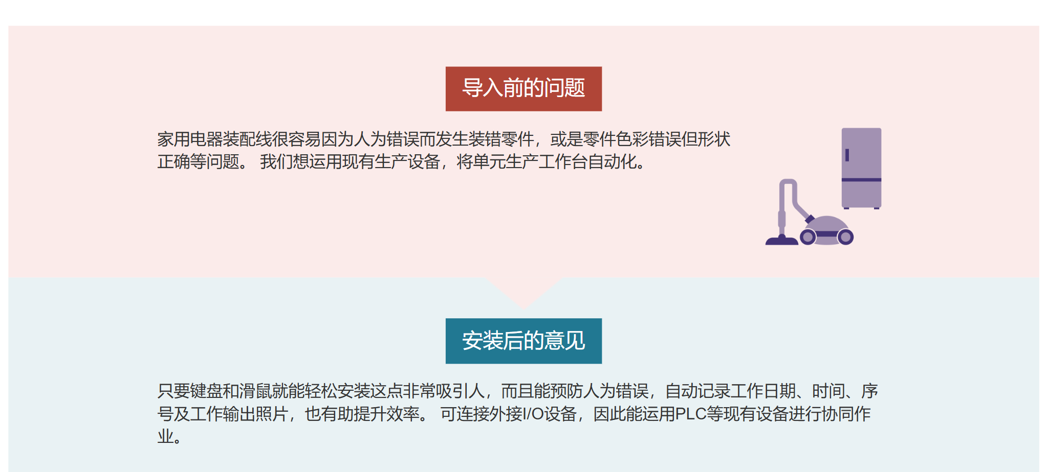 此应用实例不仅可以检查组装作业,还可以检查面板上的显示内容。