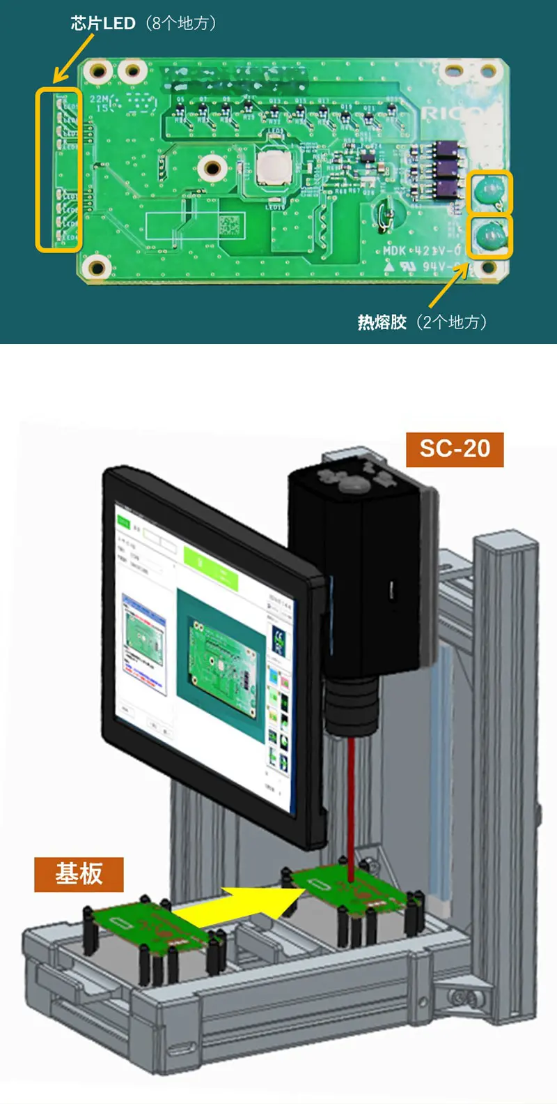 在该产品的基板安装过程中,为防止热熔胶和芯片LED的缺件,生产开始前导入保证治具是一个课题。