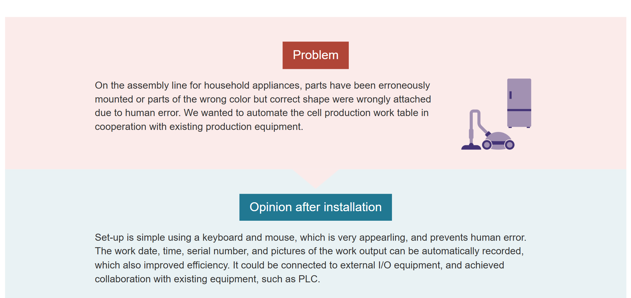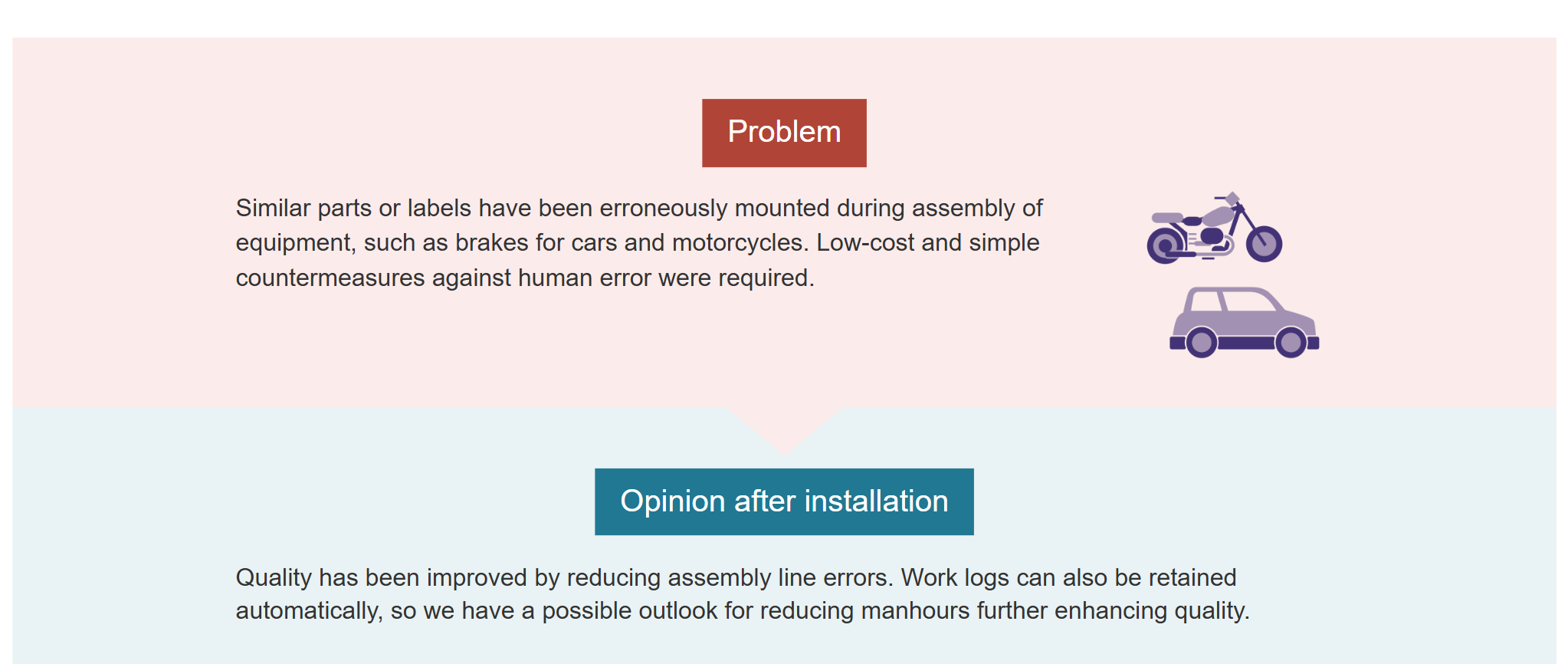 Here are some examples of how the introduction of work inspection cameras has prevented human error and improved work efficiency.