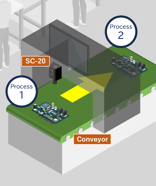 This is an example of the use of SC-20 in combination with the factory equipment, which not only automated manual inspections but also reduced unnecessary walking movements by workers.