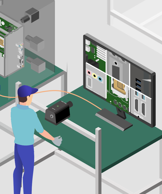 Work inspection cameras are used in a variety of ways on the manufacturing lines at Ricoh's Tottori factory.
