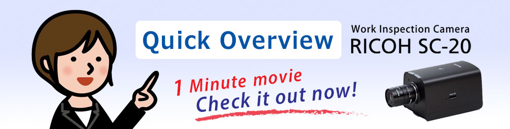 The RICOH SC-20 is a work inspection camera that detects mistakes during the assembly process. It can conduct real-time quality checks during a job, something exterior inspection cameras are not capable of. It can perform automatic checks of assembly status such as similar parts, missing parts, and work order, and perform batch inspections after a job is completed. Because the system is easy to set up without the need for a computer, it is easy to begin digital inspections.