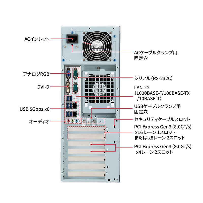 | I/Oインタフェース | USB | 6-USB 5Gbps(背面) 2-USB2.0(前面 x 2) |