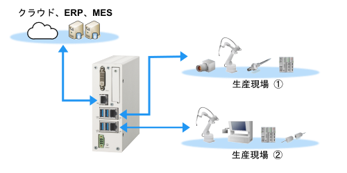 1ポートはERP/MESなどの上位システムと接続、残りの2ポートで生産設備などの情報取得に活用頂けます