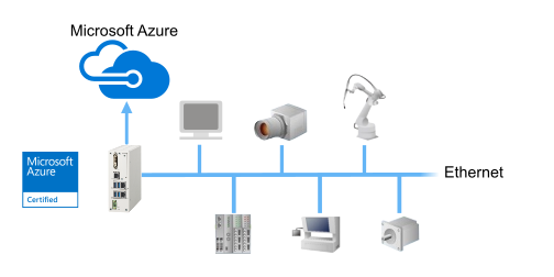 Ethernetに接続されたカメラ、ロボットなどの情報をAP-11AからMicrosoft Azureへ送信することで、稼働状況、分析、データ解析によるフィードバックなどを行うことができます。