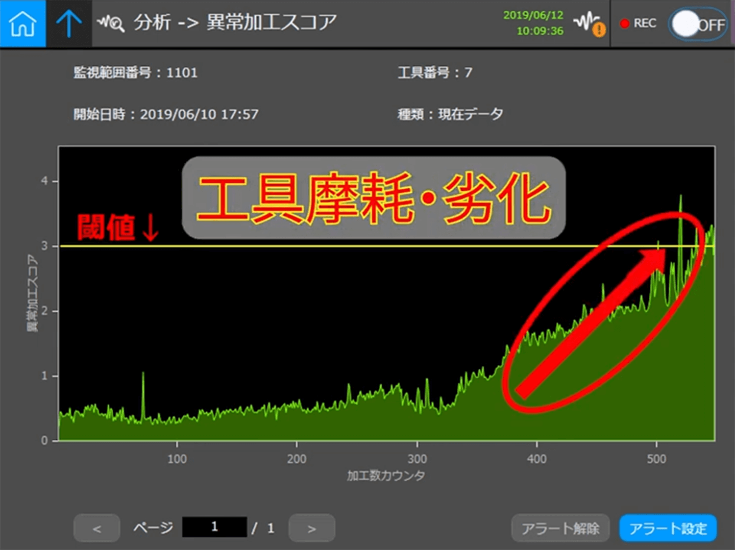 刃欠け発生時にアラート機能で機械停止