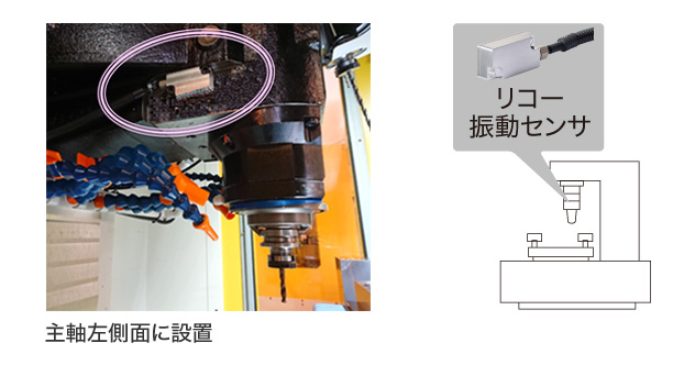 マシニングセンタで使用するドリル、リーマー、フライス、タップといった切削工具の、摩耗・欠け(チッピング)・折損や偏心をリコー独自開発の広帯域高感度振動センサーで検知※。10Hzから96kHzまでの幅広い周波数帯域の振動をリアルタイムにモニタリング可能です。